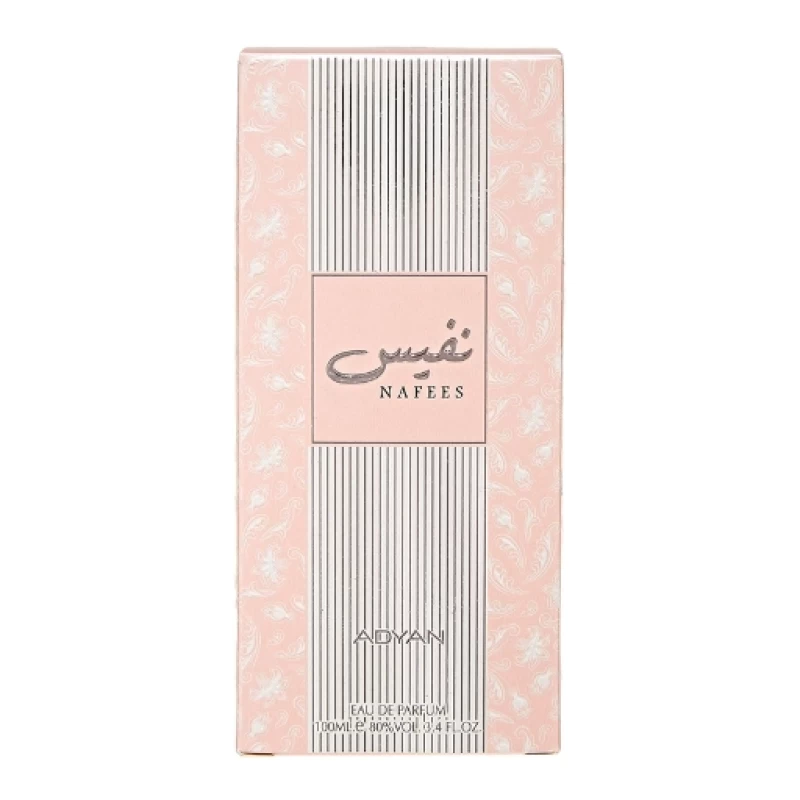 أديان نفيس Eau De Parfum للنساء من ماركة ADYAN، المميزات: - مقدمة العطر: مزيج من النوتات الزهرية والفواكه الطازجة. - قلب العطر: مزيج من الأزهار الطازجة مع لمسات من العود. - قاعدة العطر: العود، مما يضفي عمقًا وقوة على العطر طوال فترة استخدامه.