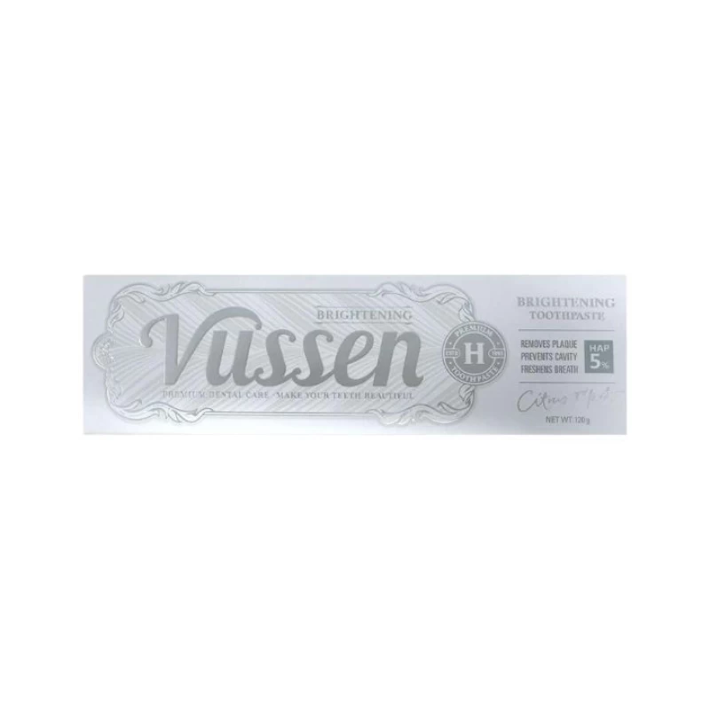 معجون أسنان من ماركة Vussen، المميزات: - يساعد على تبييض الأسنان وإزالة البقع السطحية. - يحافظ على صحة اللثة ويحمي من التسوس. - يترك الفم منتعشاً بنكهة الحمضيات والنعناع. - يعزز نظافة الأسنان ويتركها ناعمة ولامعة. - مناسب للاستخدام اليومي لجميع الأعمار.
