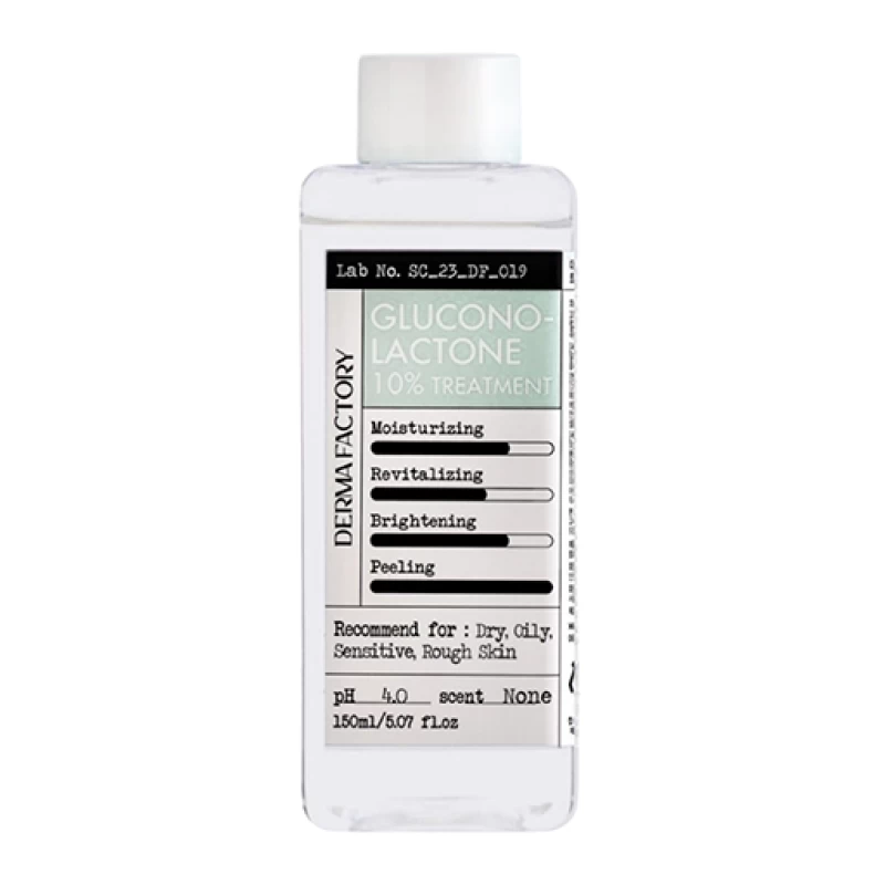 محلول معالج للبشرة 10% غلوكونولاكتون من ماركة ديرمافاكتوري الكورية، المميزات: - يوفر تأثيرًا مرطبًا ومنعشًا. - ينظم توازن الدهون والماء في البشرة. - يحتوي على pH منخفض للحفاظ على صحة البشرة.