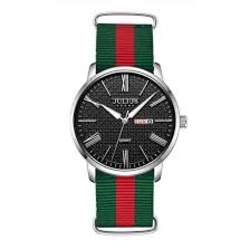 ساعات جوليوس من افضل براندات الساعات الكورية، ومن أشهر علامة تجارية لساعات اليد العصرية في كوريا. تصميمها رائع وتنوعها واسع. دع الناس تتكلم عن ساعتك. ساعات جوليوس المتناسقة لإكمال إطلالتك، لتكون جميلة وأنيقة وعصرية على الطراز الكوري. جودة لا تضاهى، مما يساعدكِ على التميز. المواصفات: • الوزن: 0.5 كغ • الماركة / المجموعة: Julius Home • التصميم: تصميم كوري • الجنس: رجالي المينا والعلبة • مادة زجاج المينا: زجاج معدني • مقاس العلبة: 40 مم • شكل العلبة: دائري • مادة العلبة: فولاذ مقاوم للصدأ • سُمك العلبة: 10 مم السوار • مادة السوار: قماش برشوت / فولاذ مقاوم للصدأ • طول السوار: مقاس حر (قابل للتعديل) • عرض السوار: 20 مم • نوع المشبك: حزام آلية الحركة والمقاومة • آلية الحركة: كوارتز يابانية MIYOTA 2115 مع تقويم • تقويم: تحتوي على تقويم اليوم مقاومة الماء: نعم. تجنب ملامسة البيئات الكيميائية مثل الغسيل والشامبو.
