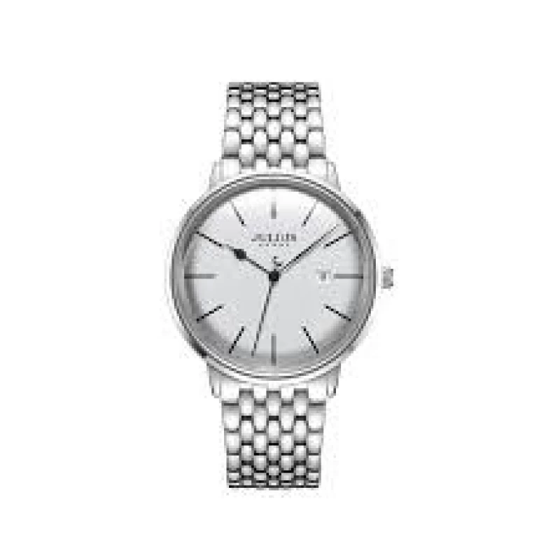 ساعات جوليوس من افضل براندات الساعات الكورية، ومن أشهر علامة تجارية لساعات اليد العصرية في كوريا. تصميمها رائع وتنوعها واسع. دع الناس تتكلم عن ساعتك. ساعات جوليوس المتناسقة لإكمال إطلالتك، لتكون جميلة وأنيقة وعصرية على الطراز الكوري. جودة لا تضاهى، مما يساعدكِ على التميز. المواصفات: • الوزن: 0.5 كغ • الماركة / المجموعة: Julius Home • التصميم: تصميم كوري • رقم الموديل: JAH-130A, JAH-130B, JAH-130C, JAH-130D • الجنس: رجالي المينا والعلبة • مادة زجاج المينا: زجاج معدني • مقاس العلبة: 40 مم • شكل العلبة: دائري • مادة العلبة: فولاذ مقاوم للصدأ • سُمك العلبة: 10 مم السوار • مادة السوار: جلد / فولاذ مقاوم للصدأ • طول السوار: مقاس حر (قابل للتعديل) • عرض السوار: 20 مم • نوع المشبك: مشبك دبوس آلية الحركة والمقاومة • آلية الحركة: كوارتز يابانية MIYOTA 2115 مع تقويم مقاومة الماء: نعم. تجنب ملامسة البيئات الكيميائية مثل الغسيل والشامبو.