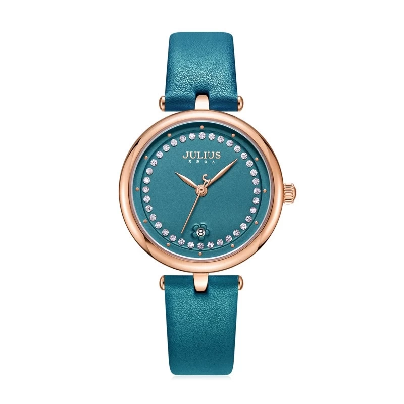 ساعات جوليوس من افضل براندات الساعات الكورية، ومن أشهر علامة تجارية لساعات اليد العصرية في كوريا. تصميمها رائع وتنوعها واسع. دع الناس تتكلم عن ساعتك. ساعات جوليوس المتناسقة لإكمال إطلالتك، لتكون جميلة وأنيقة وعصرية على الطراز الكوري. جودة لا تضاهى، مما يساعدكِ على التميز. المواصفات:- العلامة التجارية: JULIUS الوزن: 0.5 كغ مادة زجاج المينا: زجاج معدني مقاس العلبة: 30 مم شكل العلبة: دائري مادة العلبة: فولاذ مقاوم للصدأ سُمك العلبة: 7.5 مم مادة السوار: جلد طول السوار: مقاس حر (Free Size) عرض السوار: 14 مم نوع القفل: مشبك دبوس (Pin Buckle) آلية الحركة: كوارتز يابانية ⚠️ يُنصح بتجنب التعرض للمواد الكيميائية مثل مساحيق الغسيل أو الصابون. مقاومة الماء مقاوم لرذاذ الماء وغسل اليدين (غير مناسب للسباحة أو الاستحمام)