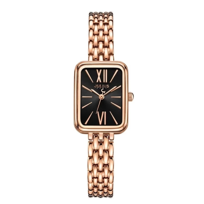ساعات جوليوس من افضل براندات الساعات الكورية، ومن أشهر علامة تجارية لساعات اليد العصرية في كوريا. تصميمها رائع وتنوعها واسع. دع الناس تتكلم عن ساعتك. ساعات جوليوس المتناسقة لإكمال إطلالتك، لتكون جميلة وأنيقة وعصرية على الطراز الكوري. جودة لا تضاهى، مما يساعدكِ على التميز. المواصفات:- العلامة التجارية: يوليوس رمز المنتج: JA-1350 من أجل: النساء، أحب الموضة والابتكار مادة السلك: سلك فولاذي مادة الزجاج: زجاج معدني شفاف وعالي الجودة، ذو صلابة عالية (مقاومة جيدة للصدمات في الحياة اليومية) حجم السطح: 20.5 × 27 مم السمك: 0.8 سم (8 مم) عرض الحزام: 1 سم (10 مم) مقاس 10 نوع الإغلاق: زر مادة العلبة: سبيكة مطلية بالأيونات الفضية، باستخدام تقنية طلاء IP الفراغي المتقدمة للمساعدة في إضفاء اللمعان وثبات اللون الآلة: كوارتز ياباني MIYOTA Japan من صنع Citizen. مقاومة الماء:نعم تجنب ملامسة البيئات الكيميائية مثل الغسيل والشامبو.