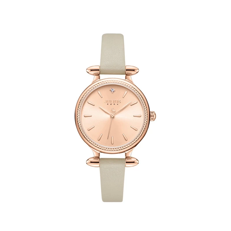 ساعات جوليوس من افضل براندات الساعات الكورية، ومن أشهر علامة تجارية لساعات اليد العصرية في كوريا. تصميمها رائع وتنوعها واسع. دع الناس تتكلم عن ساعتك. ساعات جوليوس المتناسقة لإكمال إطلالتك، لتكون جميلة وأنيقة وعصرية على الطراز الكوري. جودة لا تضاهى، مما يساعدكِ على التميز. المواصفات:- • مادة العلبة: سبيكة مطلية • وجه الساعة: زجاج معدني عالي الجودة مقاوم للصدمات • سوار الساعة: جلد • شكل الساعة: دائري • حجم وجه الساعة: 30 ملم • سماكة الساعة: 7 ملم • عرض السوار: 10 ملم • الطول الكلي للسوار: 22 سم • آلية الحركة: كوارتز يابانية • مقاومة الماء: نعم
