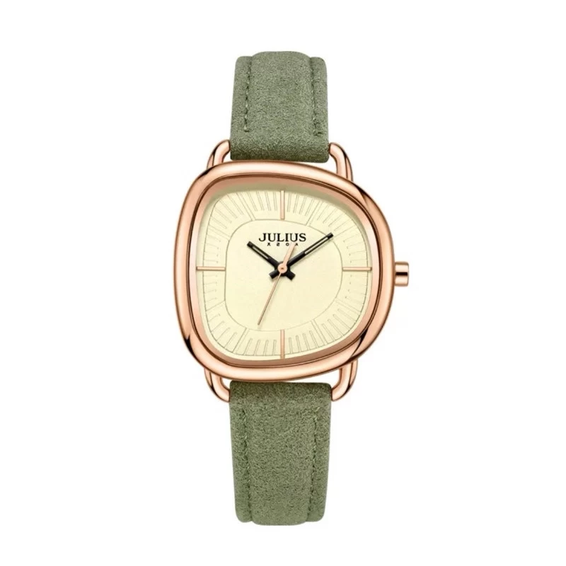 ساعات جوليوس من افضل براندات الساعات الكورية، ومن أشهر علامة تجارية لساعات اليد العصرية في كوريا. تصميمها رائع وتنوعها واسع. دع الناس تتكلم عن ساعتك. ساعات جوليوس المتناسقة لإكمال إطلالتك، لتكون جميلة وأنيقة وعصرية على الطراز الكوري. جودة لا تضاهى، مما يساعدكِ على التميز. المواصفات:- • جائزة: حصلت على جائرة افضل تصميم لنسة 2024 • الوزن: 0.5 كجم • العلامة التجارية: Julius • التصميم: تصميم كوري • رقم الموديل: JA-1393B، JA-1393C، JA-1393D • الجنس: نسائي • مادة زجاج المينا: زجاج معدني • حجم العلبة: 30 ملم • مادة العلبة: ستانلس ستيل • سماكة العلبة: 8 ملم • مادة السوار: جلد صناعي (PU Leather) • آلية الحركة: كوارتز ياباني من Miyota مقاومة الماء: نعم. تجنب ملامسة البيئات الكيميائية مثل الغسيل والشامبو.