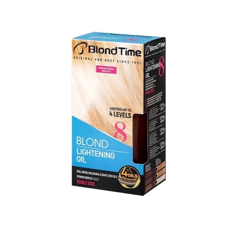 زيت تفتيح الشعر من ماركة بلوند تايم الاوربيه، تركيبة من زيوت الشيا، الاركان، المكاديميا وزيت بذور العنب يحتوي على فيتامين F،C،E لتغذية الشعر اثناء التبييض - تحتوي العلبة على - قارورة الزيت - قارورة المطور - قفازات طريقة الاستعمال أ. تحضير الخليط: وضع القفازات الواقية. افتح القارورتين. صب محتوياتها في وعاء غير معدني. حرك باستخدام محرك بلاستيكي أو خشبي لتكوين كتلة متجانسة. يستخدم الخليط فوراً . إذا كان شعرك قصيرًا أو كنت ترغبين في تلوين خصلات منفصلة، استخدمي بعض المحتويات مع الحفاظ على النسبة: الزيت - جزء واحد، المطور - جزأين. يتم تطبيق المنتج على الشعر غير المغسول. ب1. تبييض الشعر لأول مرة: يوصى بهذا التطبيق إذا كنت تقومين بتبييض شعرك لأول مرة. ضعي الخليط المحضر فوراً على خصلة بطول الشعر وعلى الأطراف، بدءاً من مسافة 2 سم تقريباً من الجذور. بعد مرور 10 دقائق، ضعي باقي الخليط على الجذور. قم بالتدليك حتى يتم تغطية كل الشعر بالتساوي. يجب أن يتراوح إجمالي وقت التأثير بين 30 و45 دقيقة حسب درجة التبييض المطلوبة. ب2. تبييض الجذور المزروعة حديثًا: يوصى بهذا التطبيق إذا كان شعرك مبيضًا وكانت الجذور المزروعة حديثًا مرئية بالفعل. ضعي الخليط المحضر على الفور على الجذور فقط. دعها تعمل لمدة 25-35 دقيقة. ثم، بللي الشعر بطوله ووزعي المنتج بالتساوي. دعها تعمل لمدة 5 دقائق أخرى. ج. التحقق من التأثير: اختبار التأثير ليس خطوة إلزامية، ولكنه يمكن أن يساعدك على استهداف اللون المطلوب بشكل أفضل. بعد 20 دقيقة من وضع الخليط، قومي بإزالته من خصلة واحدة من الشعر وتحققي من النتيجة. في حالة عدم تحقيق النتيجة المرجوة، ضعي الخليط مرة أخرى على الخصلة واتركي المنتج يعمل بشكل أكبر. يمكن تنفيذ هذا الإجراء في أي وقت مرغوب خلال عملية التبييض. د. الغسل: بعد انتهاء المدة، يصبح شعرك أشقر تمامًا. قومي بتحريك الخليط مع القليل من الماء الدافئ، ثم اغسلي الشعر جيداً بشامبو ناعم.