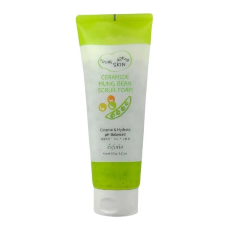 رغوة تقشير بالحمص والسكيراميد من ماركة Esfolio، تحتوي على حبيبات تقشير ناعمة تسمح بالتقشير اليومي دون تهيج، مما يترك البشرة ناعمة ومنتعشة.