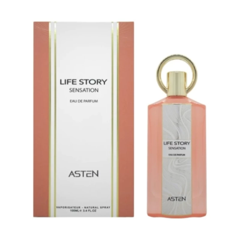 عطر لايف ستوري سينسيشن Eau De Parfum للنساء من ماركة ASTEN، المميزات: - مقدمة العطر: ليمون، كمثرى، جريب فروت، برغموت، نيرولي. - قلب العطر: كشمش أسود، خوخ، ورد، زهر البرتقال، ياسمين ستيفانوتيس. - قاعدةالعطر: باتشولي، خشب الأرز، مسك، خشب الكشمير.