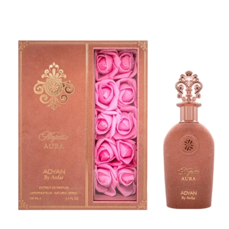 ماجستك اورا Eau De Parfum للنساء من ماركة Adyan، المميزات: - افتتاحية العطر: الليتشي والبرغموت والراوند وجوزة الطيب. - قلب العطر: الفاوانيا والورد التركي والبتاليا والفانيليا. - قاعدة العطر: الكشمير والأرز والبخور ونجيل الهند.