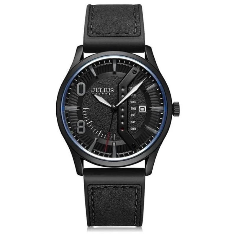ساعات جوليوس من افضل براندات الساعات الكورية، ومن أشهر علامة تجارية لساعات اليد العصرية في كوريا. تصميمها رائع وتنوعها واسع. دع الناس تتكلم عن ساعتك. ساعات جوليوس المتناسقة لإكمال إطلالتك، لتكون جميلة وأنيقة وعصرية على الطراز الكوري. جودة لا تضاهى، مما يساعدكِ على التميز. المواصفات:- • مادة السوار: جلد مطاطي كوري أسود • الزجاج: شفاف وعالي الصلابة • نوع المشبك: زر ضغط (Push button) • مادة العلبة: سبيكة سوداء مطلية بتقنية الطلاء الأيوني (Ion-plated) • الحركة: كوارتز يابانية عالية الدقة • مقاومة الماء: حتى 30 مترًا (3ATM) • التصميم: سوار مطاطي أزرق، قرص أبيض، وعلبة فضية