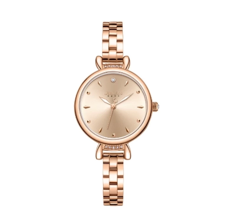 ساعات جوليوس من افضل براندات الساعات الكورية، ومن أشهر علامة تجارية لساعات اليد العصرية في كوريا. تصميمها رائع وتنوعها واسع. دع الناس تتكلم عن ساعتك. ساعات جوليوس المتناسقة لإكمال إطلالتك، لتكون جميلة وأنيقة وعصرية على الطراز الكوري. جودة لا تضاهى، مما يساعدكِ على التميز. المواصفات:- • العلامة التجارية: JULIUS • الموديل: JA-1362 • نوع العرض: بعقارب (Pointer) • الفئة المستهدفة: نسائية • النمط: عملي / بزنس • مقاومة الماء: نعم • أداء مقاومة الماء: حتى 30 مترًا • نوع الحركة: كوارتز • ماركة الحركة: Miyota Nishitetsu – اليابان • منشأ الحركة: اليابان • طراز الحركة: Nishitetsu – اليابان • السماكة: 7.5 ملم • قطر القرص: 29 ملم • نوع التاج (Crown): لولبي (Spiral crown) • نوع الغطاء الخلفي: عادي • مادة المرآة: زجاج معدني مقوى (Mineral reinforced glass) • نوع مشبك الساعة: مشبك مجوهرات (Jewelry buckle) • مادة المشبك: فولاذ مقاوم للصدأ • شكل القرص: دائري • مادة العلبة: سبيكة معدنية (Alloy)