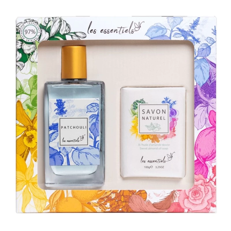سيت عطر باتشولي+ صابونة للنساء من ماركة Les Essentiels الفرنسية، يتكون من *عطر باتشولي للنساء خشبي بمكونات طبيعية 97% بثباتية تدوم طويلاً - مقدمة العطر: خشب الأرز، فول التونكا - قلب العطر: اللابدانوم، خشب الصندل، الباتشولي - قاعدة العطر: المسك، العنبر، الفانيليا * صابونة بقاعدة نباتية من مكونات طبيعية بنسبة 98%، تركيبة غنية بزيت اللوز الحلو الذي يغذي البشرة ويحافظ عليها بوزن 100 غم
