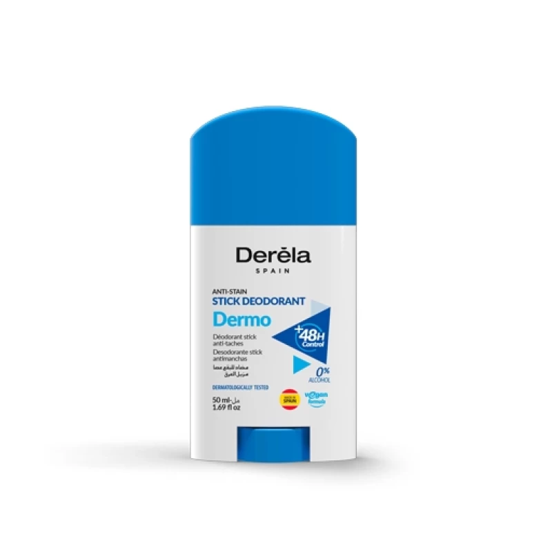 صابونة ديرمو مزيلة للعرق من ماركة ديريلا الاسبانية، تركيبة نباتية، توفر حماية ضد الروائح لمدة تصل إلى 48 ساعة، خالية من الكحول، ولطيفة على البشرة.